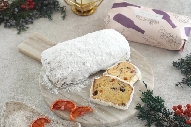 ※常温配送にてお送りいたします。(ケーキと同梱可能です) ※12月19~24日の間に納品しますので、希望日時を備考に必ずご記載ください。記載のない場合は最短にてお届けいたします。 【クリスマス限定商品 限定10本】 熟成の酒粕を練りこんだシュト-レン。 日本酒シロップで漬け込んだクランベリーにレーズン、パイン、パパイヤ、宇和島のブラッドオレンジ、アーモンドと、ナッツ&フルーツをたくさん練りこみ、ほのかにスパイスの風味がするくせのないシュトーレンです。仕上げに北海道産バターをたっぷりしみ込ませています。日が経つごとに、酒粕の熟成で美味しさが増していきます。 酒粕シュト-レン ■サイズ 1本(約170mm×70mm×H50mm) 1本でお届けいたします。 ※紫のボトルとフルーツの絵柄の包装紙にてお届けいたします。 ■原材料 小麦粉(国内製造)、バター(北海道産)、アーモンド、砂糖、牛乳、卵、酒粕、ブラッドオレンジ(愛媛県産)、ドライイースト、クランベリー、レーズン、パイン、パパイヤ、日本酒、塩、カルダモン、ナツメグ、(原材料の一部に小麦・乳・卵・アーモンド・大豆・オレンジを含む) ■賞味期限 製造日から30日間 ■保存方法 直射日光を避け、常温で保存ください。 ■アレルギー表示対象項目 卵、小麦、乳、大豆、アーモンド、オレンジ