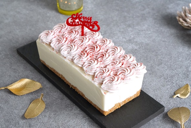 ※冷凍クール配送にて、冷蔵解凍いただきお召し上がりいただけます。 ※12月19~24日の間に納品しますので、希望日時を備考に必ずご記載ください。記載のない場合は最短にてお届けいたします。 【ホワイトレアチーズケーキ】 さわやかな北海道産クリームチーズ、ホワイトチョコレート、バニラペーストのレアチーズ生地に、中心にはラズベリージャム、底生地はザクザクのグラハム生地の食べ応えあるレアチーズケーキ。トッピングには苺のクリームを花柄に絞っています。 写真のクリスマスピックは別添でおつけします。 【商品サイズ】170mm×80mm×H70mm 【原材料名】 クリームチーズ(北海道十勝産)、乳等を主要原料とする食品(乳製品、食用植物油脂、デキストリン、乳たんぱく、乳糖)、バターミルク、ホワイトチョコ(ココアバター、砂糖、全粉乳)、ラズベリー、砂糖、小麦全粒粉、バター、ひまわり油、発芽小麦粉、全卵、レモン、ゼラチン、苺パウダー、植物繊維、脱脂粉乳、麦芽エキス、イヌリン、食塩、/乳化剤(大豆由来)、膨張剤、セルロース、ホエイソルト、安定剤(ローカスとビーンガム)、香料、(一部に小麦・乳成分・卵・大豆・ゼラチンを含む) 【賞味期限】 商品到着後冷凍2週間。冷蔵庫で5時間程度解凍し、なるべく当日中にお召し上がりください。